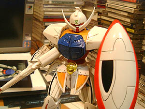 という事で最後の写真。ビームライフルを構えて敵に照準を向けているトコロかな?。この“ヒゲ”デザインの頭部もマニアには大分評判悪かったみたいだけど、こうしてみるとなかなかカッコイイよね。
