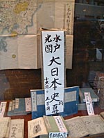 今日の出物です。おそれ多くも天下の副将軍(正式には、んな身分は無いが)水戸光圀公編纂の「大日本史」100冊揃いで5万円!。なんだか高いんだか安いんだかよく判りませんが…。