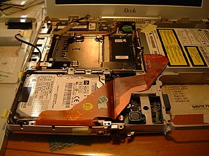 今月始めに入手したiBookなのだが、これから必要なものや、その他諸々のデータを全て突っ込んだら、10GBのHDが空き1GB強になってしまったので、これはマズいと思い、内蔵HDを大容量のHDに換装することにする。